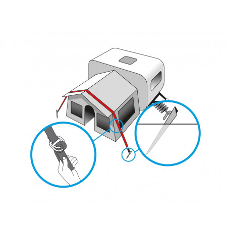 • Cincha tensora para casos de fuerte viento.