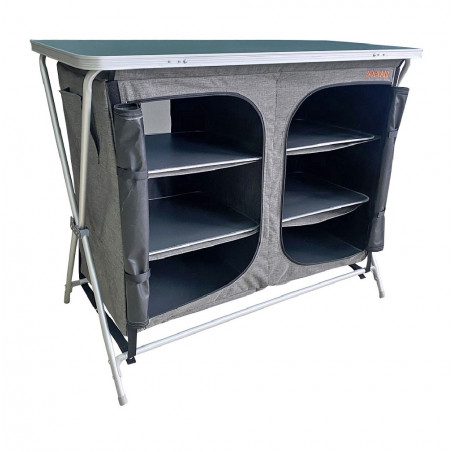 Soplair ha diseñado la unidad de almacenamiento para que sea ultra práctica y fácil de montar para que pueda guardar sus pertenencias a salvo de los caprichos del clima y tenerlas a mano. 3 o 6 estantes según el modelo para guardar la compra de alimentos y la ropa. Su pequeño tamaño le permitirá llevarlo a todas partes y su resistente estructura de aluminio también le dará la posibilidad de dejarlo en el lugar durante su estancia.