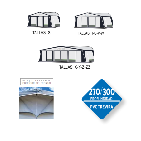 Tallas: S, T, U, V, W, X, Y, Z y ZZ (perímetro de caravana de 786 a 1235 cm)