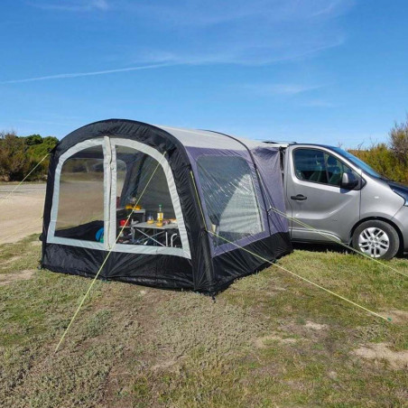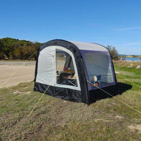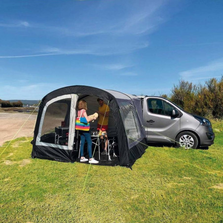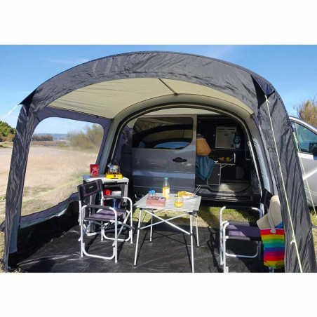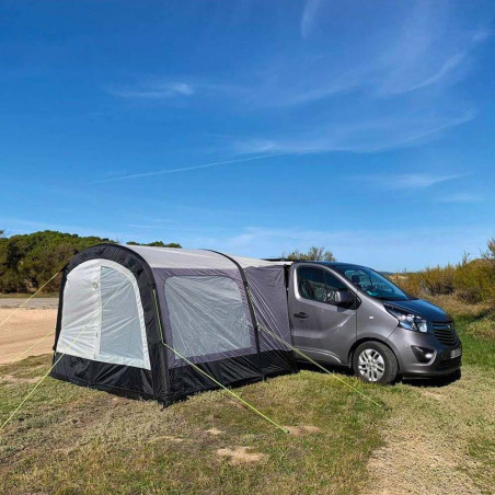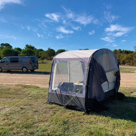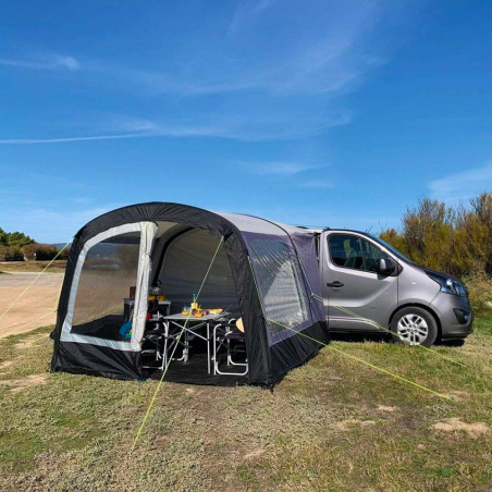 El avancé Breva Air es un avancé hinchable especial Camper multipunto e independiente. Ligero y compacto, es perfecto en verano para todos aquellos que hacen paradas cortas y quieren aumentar el espacio habitable de su furgoneta camperizada. Para la comodidad de los usuarios, es rápido y fácil de configurar y puede permanecer montado incluso en ausencia del vehículo al que está conectado.