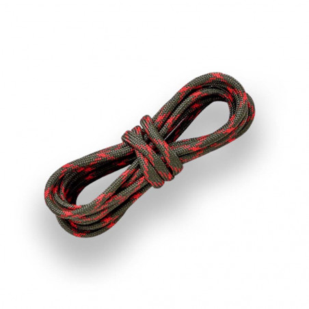 Este modelo incluye 2 metros de paracord 550, la variedad más extendida y popular de este tipo de cuerda, es perfecta para bushcrafters y montañistas, ya que ofrece un gran equilibrio entre flexibilidad y fuerza y se puede utilizar para envolver asas de cuchillos de caza, para cañas de pescar, sujetar cargas o fijar correas y cinturones rotos.