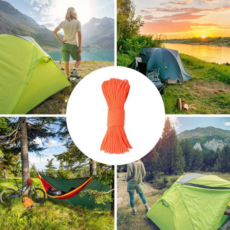 Nuestro cordón Paracord de 25 metros es un instrumento esencial tanto para actividades de campo como para las tareas del día a día. Ideal para ir de acampada y atar vivacs, toldos y tarps, para crear una red, o para cualquier otra situación en la que necesites una cuerda resistente y ligera, incluso para suspensión de hamacas. Un artículo imprescindible para todos los entusiastas de las actividades al aire libre, la supervivencia, la acampada y el senderismo. ¡La cuerda perfecta para ti!