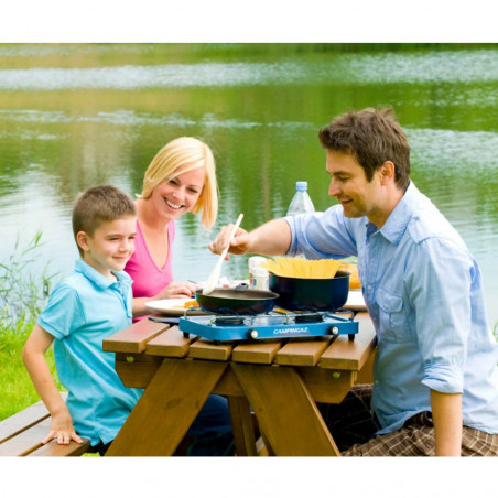 Versátil cocina portatil Campingaz BASE CAMP CON TAPA de 2 quemadores.
