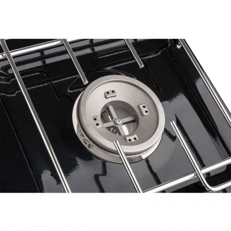 Cocina de gas de 2 fuegos, estable y compacta. Fácil de transportar. Los quemadores son regulables individualmente. La estructura es metálica esmaltada con polvo con grill de níquel cromado resistente a deformaciones.