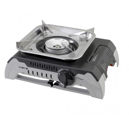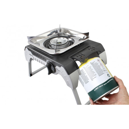 Cocina de gas de 1 fuego, estable y compacta. Fácil de transportar. La estructura es de acero inoxidable con grill de aluminio.