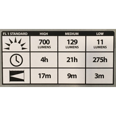 • Múltiples configuraciones de luz: 700 lúmenes en máxima potencia, 129 lúmenes en potencia media y 11 lúmenes en baja potencia.