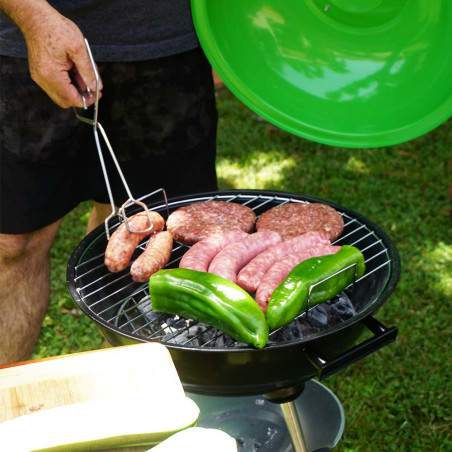 Disfruta de una buena barbacoa de verano con la práctica y funcional Barbacoa redonda verde de Hosa, ideal para camping y jardín. Tiene una parrilla de 43 cm de diámetro y una tapa para protegerla de la lluvia cuando no la estés utilizando. Además, sus ruedas le permitirán un fácil y cómodo traslado, tanto en el camping como en casa. Ya no hay excusa para no invitar a tus amigos este fin de semana.