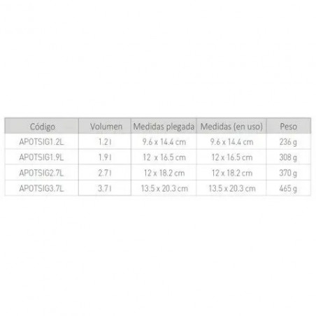 Dispones de diferentes capacidades según lo litros que necesites cocinar en la montaña. Olla plegable para camping con sistema Pivot Lock