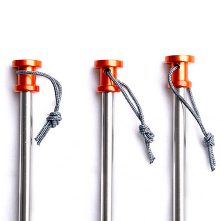 Pack de 10 piquetas de aluminio de 18,5 cm Material: Aluminio de 5 mm diámetro Ideal para tensar tu tienda de campaña, tienda cocina, etc... Peso...