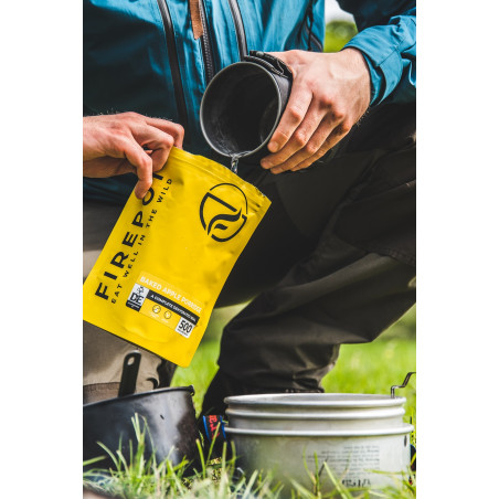 Firepot elabora comida ampliamente premiada para actividades outdoor y expediciones. Nuestras comidas deshidratadas han servido de energía a expediciones en todo el mundo durante más de siete años. Nuestra gama incluye tanto recetas veganas como sin gluten y se hacen en porciones normales y extragrandes. Todo lo que necesitas es echar agua hirviendo directamente en la bolsa para obtener una deliciosa comida casera.