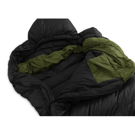 Las plumas de pato con un relleno de 650 cuin en una proporción de 90/10 proporcionan un excelente altillo y, por lo tanto, una gran capacidad de empaquetado a la vez que mantienen un excelente confort térmico hasta -12°c.