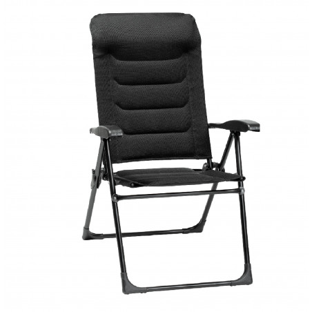 Silla de camping plegable de alta calidad con un respaldo alto que se puede ajustar en 8 posiciones y estructura clásica en forma de U que garantiza un apoyo seguro incluso en suelos blandos. La estructura compacta y plegable está hecha de aluminio tubular con recubrimiento de polvo que, en combinación con el asiento de tejido 3D duradero, garantiza un asiento estable y muy cómodo.