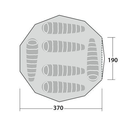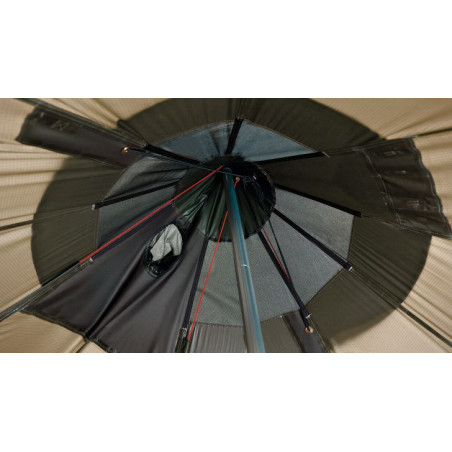 - Techo: HydroTex HD RS, 75D polyester 190T, Ripstop, Fire retardent con las costuras termoselladas y una buena impermeabilidad gracias a la columna de agua de 5.000 mm