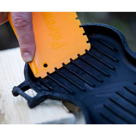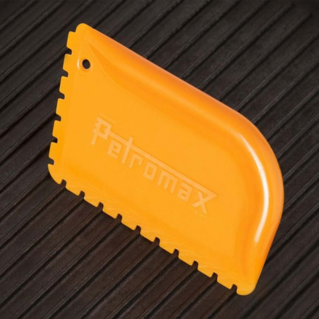 La estructura de dientes del raspador encaja perfectamente en todos los productos Petromax de hierro fundido con superficie estriada. Esto te permite limpiar fácilmente cualquier superficie de parrilla con ranuras, lo que le ahorra tiempo para limpiar sus productos con estructura estriada. El raspador es resistente al calor hasta 120 ° C y, por lo tanto, le permite limpiar productos de hierro fundido que aún están calientes o empapados en agua caliente. El raspador estriado está hecho de plástico apto para alimentos.